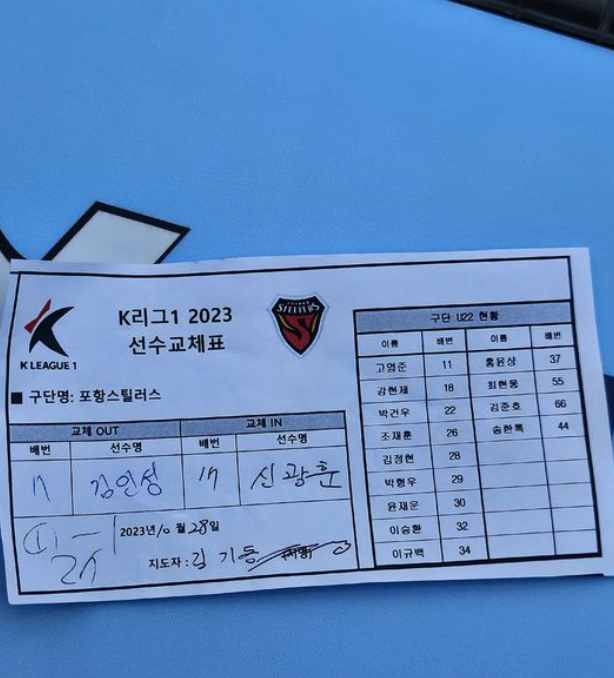 3번 김용환을 교체해야했지만 착각하고 7번 김인성을 교체해버리고 말았다.