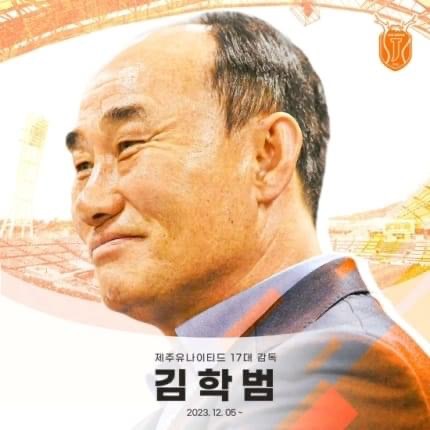 제주utd 새 사령탑에 전 아시안게임 국가대표 감독을 지냈던 김학범 감독이 선임되었습니다.