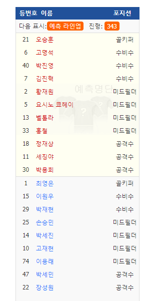 대구예상라인업