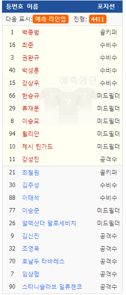 서울예상라인업