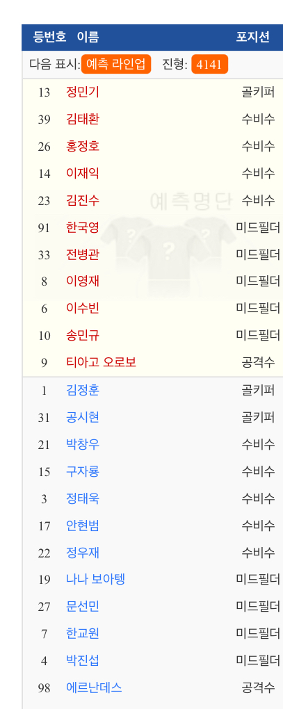 예상라인업