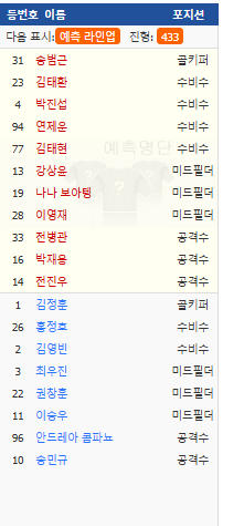 예상라인업