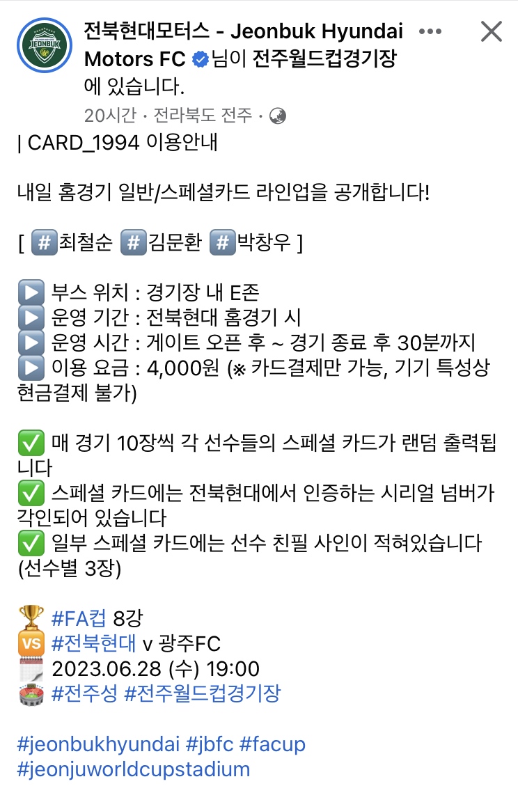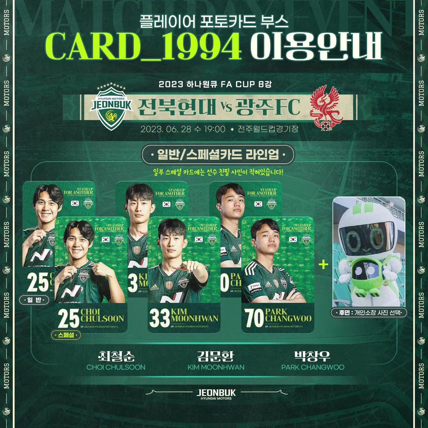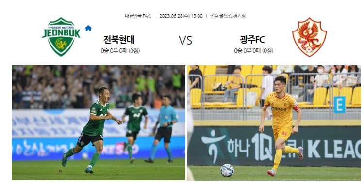 06.28일 19:00시 전주 월드컵 경기장에서 광주FC와 FA컵 8강 경기를 합니다.