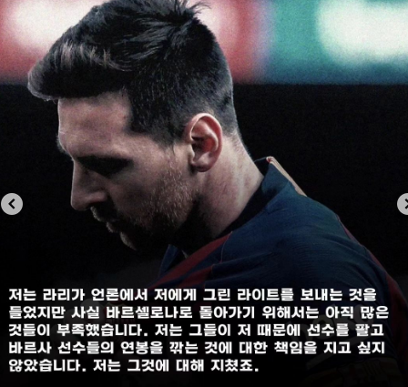 저는 그들이 저 때문에 선수를 팔고 바르사 선수들의 연봉을 깎는 것에 대한 책임을 지고