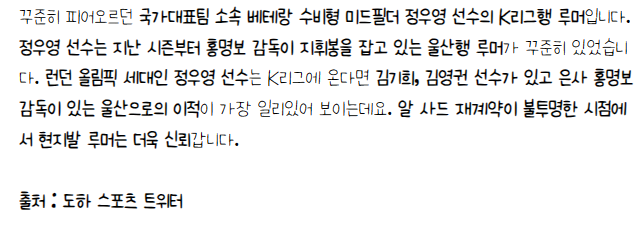 아마 정우영이 K리그 복귀를 한다면 국내 선수 최다 연봉 15억 원 이상을 수령할 가능성이 높고 3년 정도의 다년 계약을