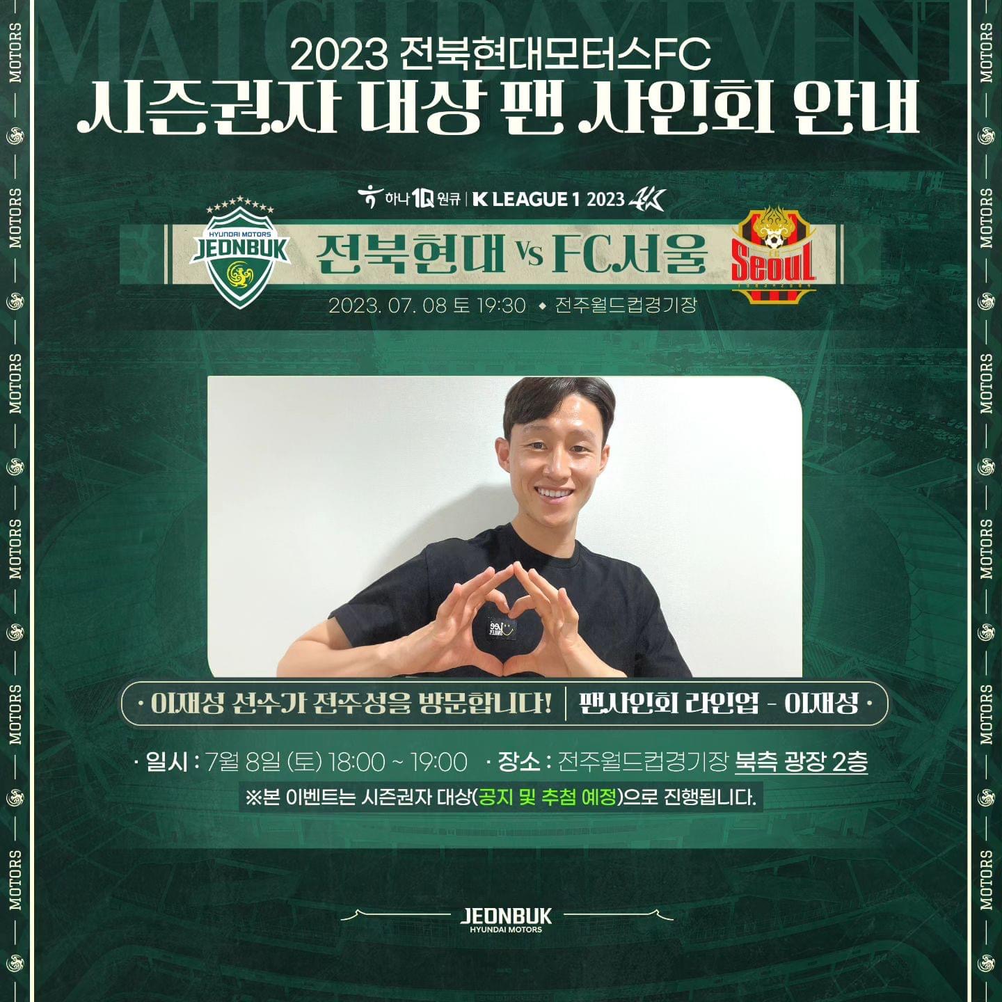전주성에 이재성선수가 방문합니다. 단 시즌권 대상으로 진행한다니 참고 바람