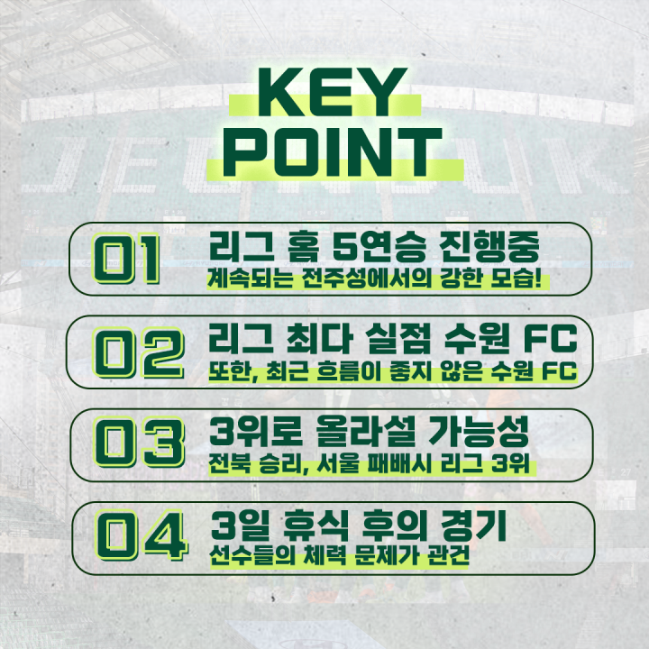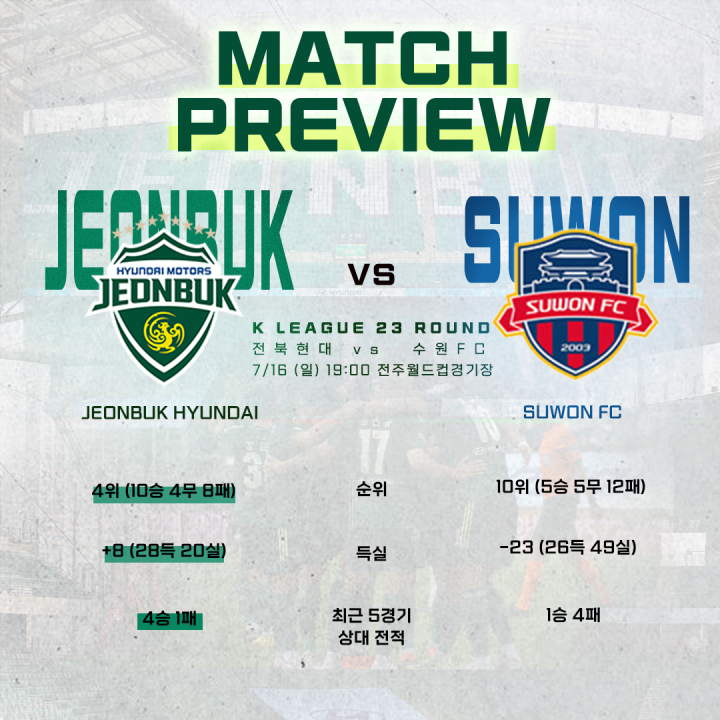 최근 맞대결 10경기에서 전북현대 5승 2무 3패로 우세