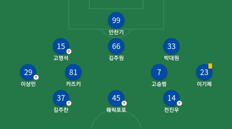 좌우 윙백은 이기제 선수, 이상민 선수가 구성하고 있습니다.